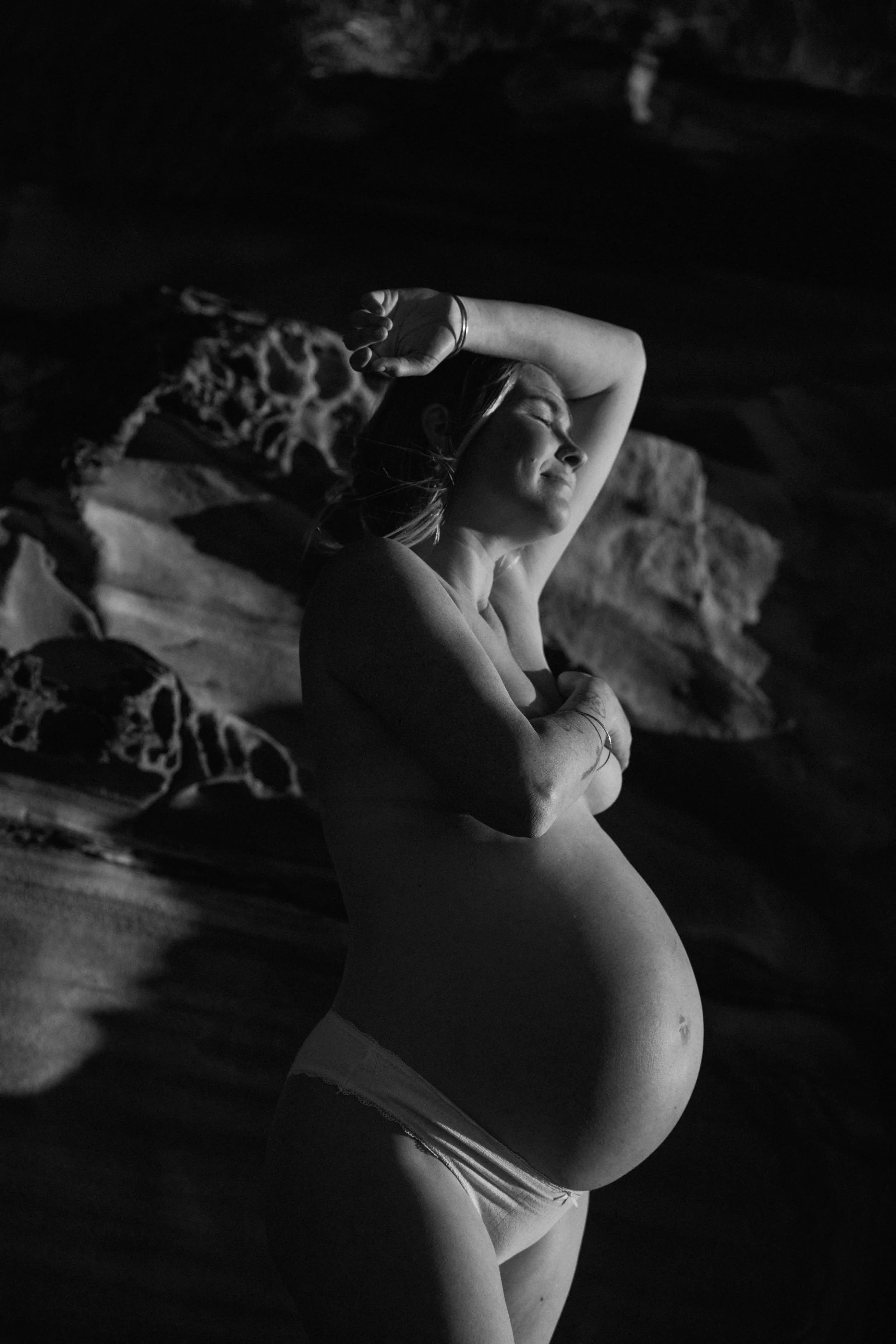 In the afternoon, we drove down to the beach for our second shoot with a beautiful family of five - mum, dad, two sons, and a daughter, with another bub on the way. We started with the kids on skateboards in the street, then made our way down to the beach where Polly demonstrated a few of her games and prompts for less-than-enthused kiddos. It was awesome to see her win them over and bring out their personalities. We ended with some solo maternity portraits of mum, who braved the cold and stripped down to her undies in front of ten photographers which in my opinion was so worth it! An absolute legend.